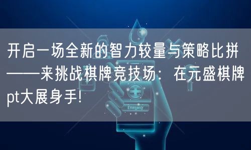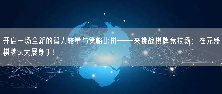 开启一场全新的智力较量与策略比拼——来挑战棋牌竞技场:在元盛棋牌pt大展身手!